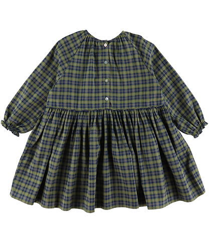 Robe élégante Konges Sløjd avec un motif à carreaux classique dans des tons bleus et verts.