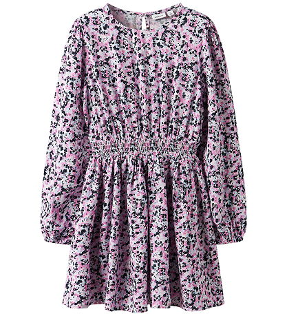 Élégante robe Name It à imprimé floral rose et noir. Robe présente des manches longues et une encolure tour. Name It est robe d'un smock à la taille pour un ajustement parfait, et s'ouvre au niveau du cou par un bouton.