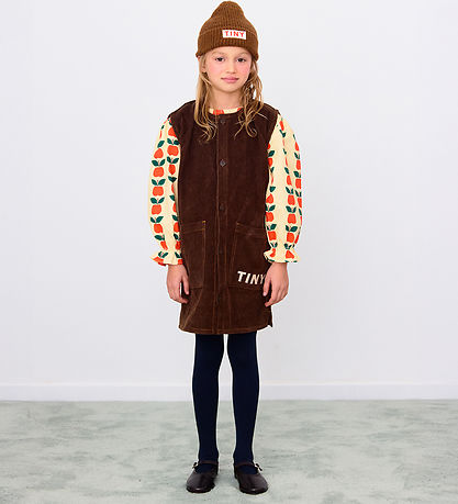 Jolie robe Tiny Cottons en velours côtelé marron foncé de couleur unie dans une qualité à tissage serré.