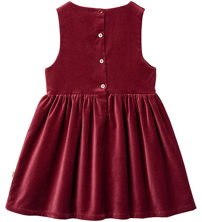 Magnifique robe Wheat en velours rouge profond. Robe est coupée à la taille, formant une jupe ample et finement plissée. Elle est après la fermeture décorative en haut du dos.
