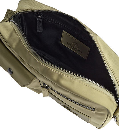 Joli sac à bandoulière Markberg de couleur vert kaki avec un logo sur le devant.