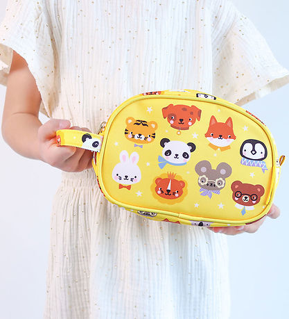 Jolie trousse de toilette A Little Lovely Company en jaune avec un imprimé animal coloré. La sac de toilette A Little Lovely Company a un design carré avec des bords arrondis. Il se compose d'un grand Rum, qui s'ouvre en haut avec une fermeture éclair. La Sac de toilette est dotée d'une sangle pratique à une extrémité.