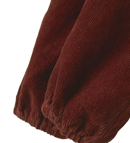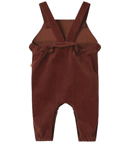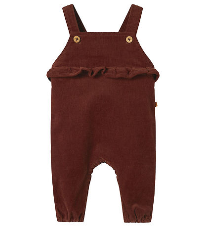 Charmante salopette Lil' Atelier en velours côtelé bordeaux. Lil' Atelier est dotée de fines salopettes boutonnées sur le devant, d'un volant sous la poitrine et d'élastique à ouvertures de jambes. Salopettes est également dotée À boutons poussoirs à l'entrejambe.