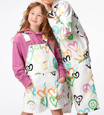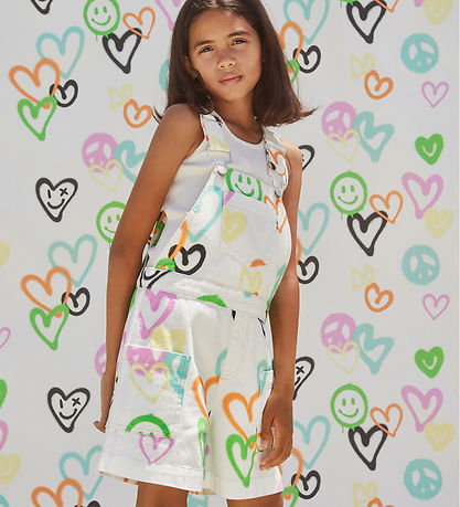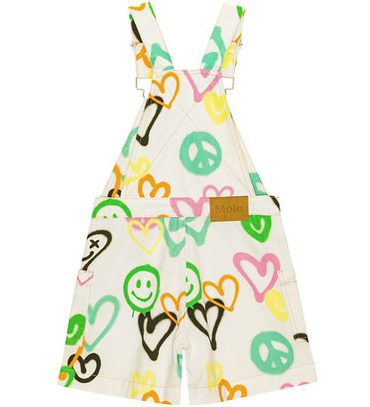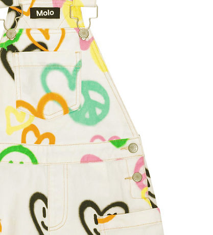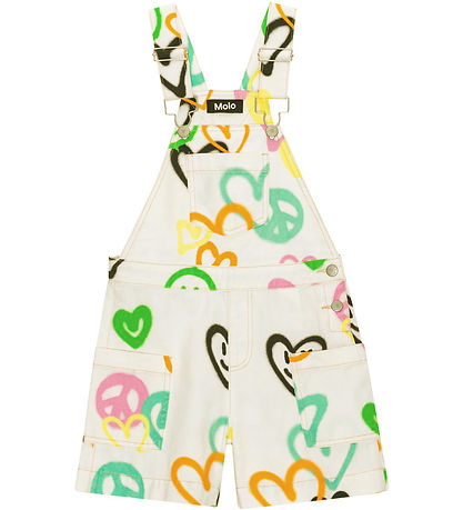 Magnifiques salopette Molo en blanc avec un imprimé intégral de coeurs peints à la bombe en plusieurs couleurs.