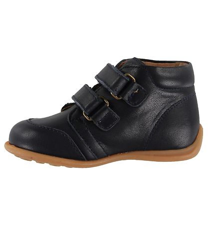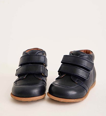 Les chaussures pour débutants Bisgaard marine sont fermées sur le cou-de-pied par des bandes Velcro et les chaussures ont un contrefort de talon fixe. L'intérieur de la chaussure est fait d'un adorable cuir marine et la semelle intérieure est douce et amovible.