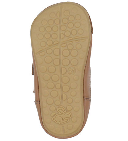 Belles sandale d'apprentissage à la marche Bundgaard en cuir marron avec coutures fines et un Lille Kanin en relief sur la languette.