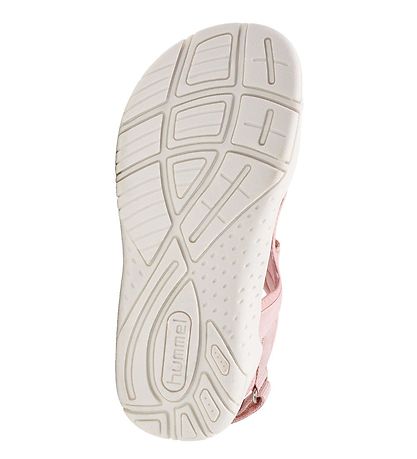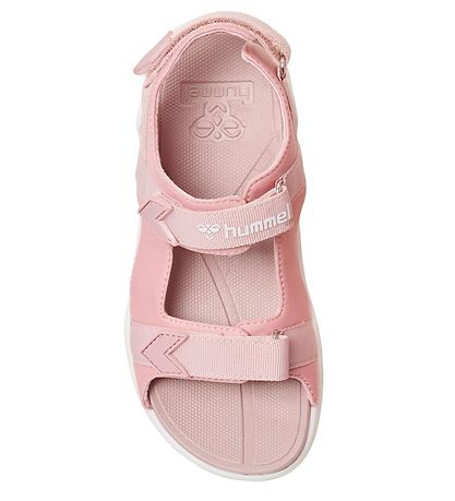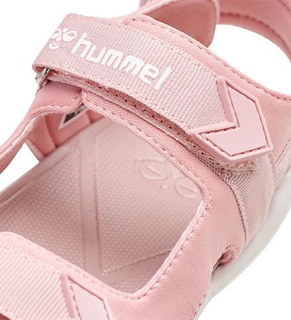 Magnifiques sandales Hummel en textile rose avec «Hummel» et logo en blanc sur la bride cheville.