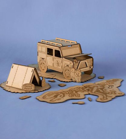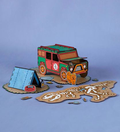 Set de Création Crateit sympa avec des motifs pour une jeep, une tente et un chien.