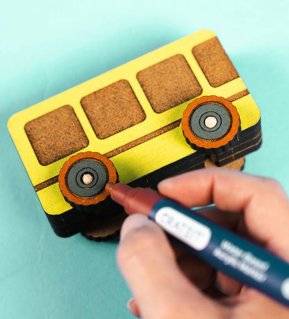 Avec le ensemble Crateit, vous pouvez construire votre propre bus. Le bois est incolore et vous devez donc le colorer vous-même. Il peut être coloré avec tous types de marqueurs de couleur, peintures et crayons de couleur.
