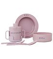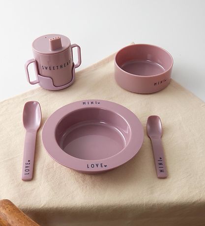 set de vaisselle Nice Design Letters en babypink avec des lettre plus foncées dans la police d' Arne Jacobsen.