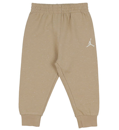 set Smart Jordan, composé d'un body et paire' un pantalon de jogging. Le body est d'une teinte ivoire blanc avec des bords marron clair. Le pantalon de survêtement est marron clair avec une moucheture blanche et les deux parties de ensemble ont un logo brodé sur le côté gauche.