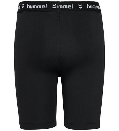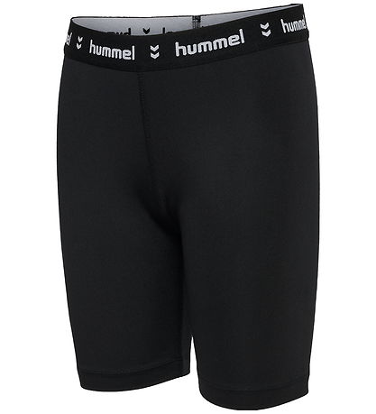 shorts de vélo Hummel pratique, de couleur noire classique, avec une taille élastique ornée du logo Hummel et des chevrons caractéristiques. Sa coupe ajustée convient à de nombreuses activités.