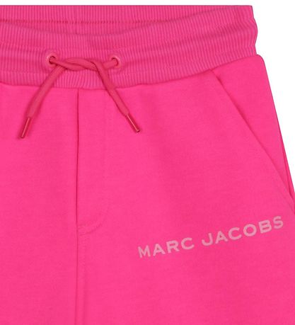 shorts élégant Little Marc Jacobs en sweat de couleur fuchsia, et sur la jambe gauche du pantalon "Marc Jacobs" est imprimé en lettre rose. Au dos, sur le côté droit, il y a un petit texte rose avec un texte rose.