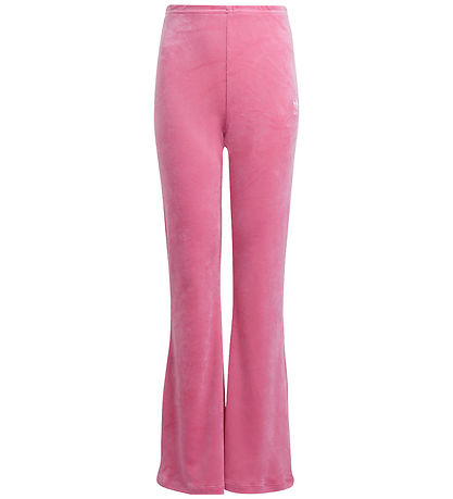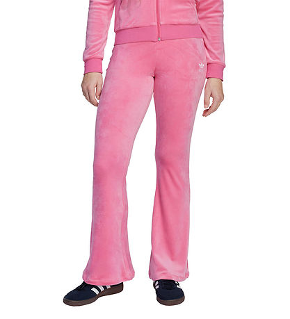 Élégant survêtement en velours adidas Originals d'un rose prêt. Ce pantalon en velours adidas Originals présente une coupe ajustée avec un ourlet légèrement large. Sa surface douce lui confère un aspect velours classique, tandis que les bords simples complètent son design.