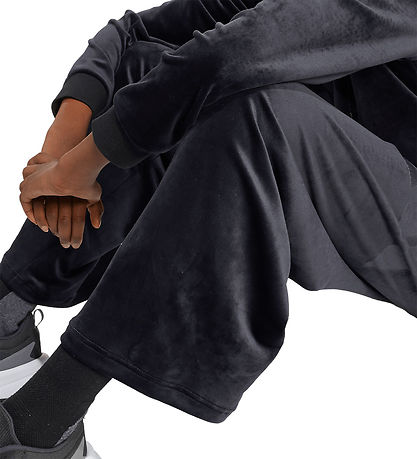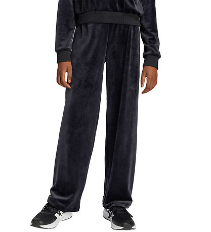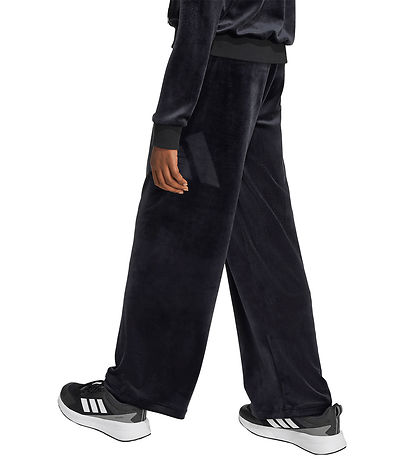Élégant survêtement en velours adidas Performance, d'un noir classique. adidas Performance est doté d'une large ceinture pantalon en velours resserrée par un À lacets à l'avant. Sa coupe ample, sans bords côtelés visibles, lui confère un look décontracté.