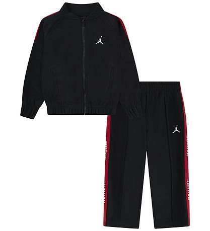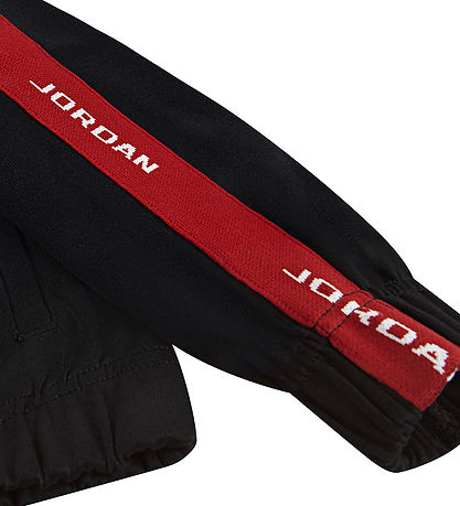 Le gilet Jordan présente un large bord à l'encolure et des manches à larges bords élastiques. Gilet se ferme par une fermeture éclair et possède des poches pratiques sur les côtés. Le Pantalons de survêtement présente un large bord élastique à la taille et des poches pratiques sur les côtés.