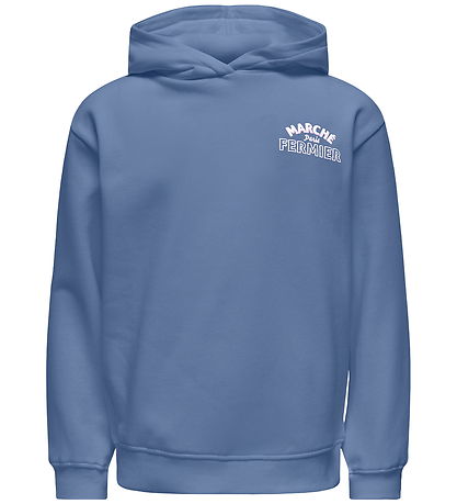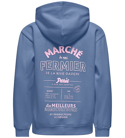 Joli sweat à capuche Kids Only d'une jolie teinte bleu-gris, avec un intérieur en coton brossé doux. Ce Sweat à capuche Kids Only arbore un imprimé caoutchouc rose sur la poitrine avec le texte « Marché Paris Fermier ». Au dos, un grand texte du même style est imprimé.