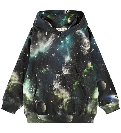 sweat à capuche élégant Molo, orné d'un thème spatial fascinant, avec des planètes et des étoiles dans des tons gris et verts. Sweat à capuche est doté d'une grande poche kangourou sur le devant. Le design Molo intègre également des bords côtelés aux poignets et à la taille, pour un détail pratique.