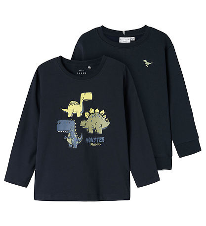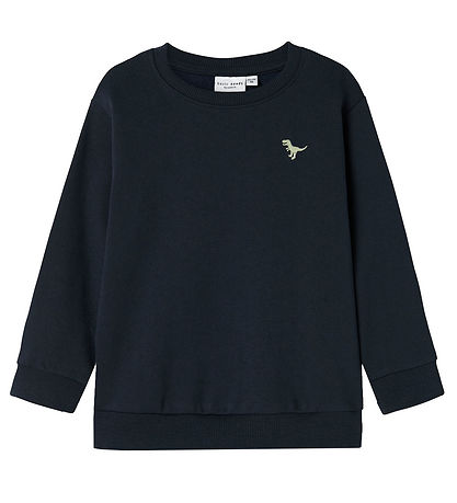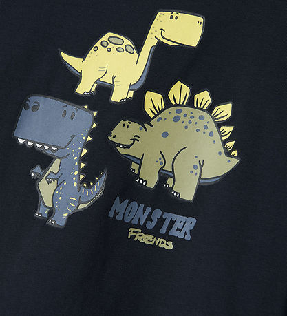 Ensemble Fin Name It set d'un sweat et d'une blouse de couleur bleu marine. Le Chemisier est orné d'un joli imprimé dinosaure avec le texte "MONSTER FRIENDS" sur le devant, qui donne une touche ludique au quotidien. Le sweat présente un petit et fin dinosaure brodé sur la poitrine gauche. Le sweat-shirt a des bords côtelés pratiques dans toutes les ouvertures et le chemisier est de qualité légère.
