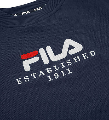 Élégant sweat Fila bleu foncé, orné du logo Fila brodé et de l'inscription « Established 1911 » sur le devant. Ce sweat Fila possède un tour et des manches longues pour une allure simple.