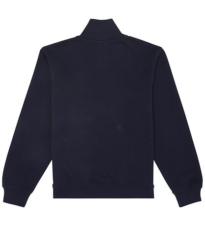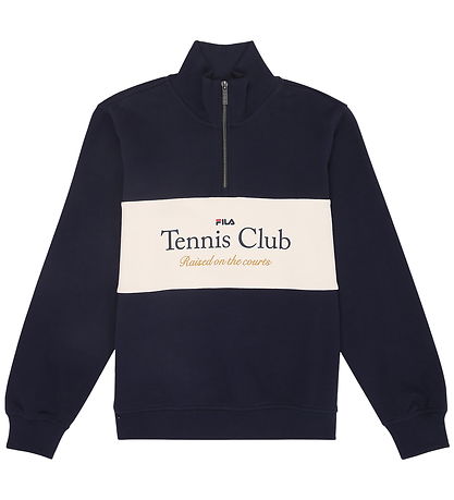 Sweat-shirt Fila Smart d'un bleu marine profond avec un empiècement blanc sur la poitrine. Fila col mi-haut zippé lui confère une touche moderne. Le devant est orné de l'inscription « Tennis Club Raised on the courts », qui lui confère un look sportif.