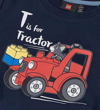 Joli sweat-shirt LEGO® Duplo bleu marine avec un imprimé tracteur amusant sur le devant montrant un chat et des blocs de construction colorées. Le sweat-shirt a des manches longues, ce qui le rend idéal pour les journées plus fraîches.