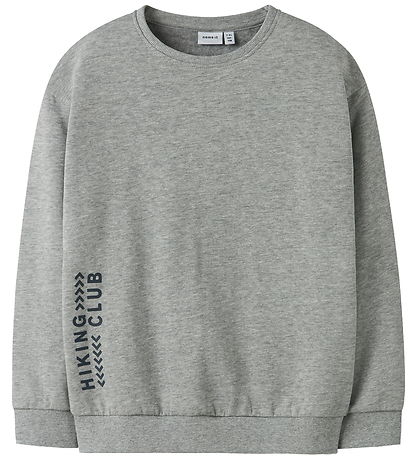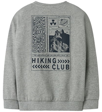 Sweat-shirt Name It élégant en gris chiné, orné d'un grand imprimé de montagnes et d'icônes au dos. Ce Name It possède un col tour et des manches longues. Un discret imprimé « Hiking Club » sur le côté apporte une touche de modernité.