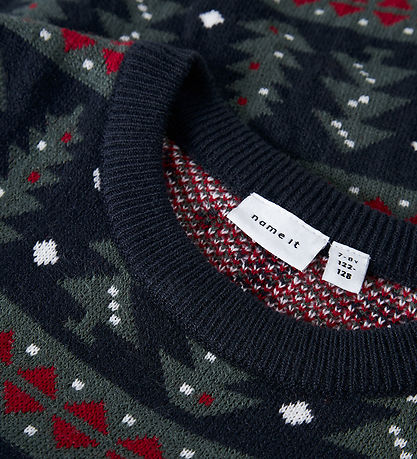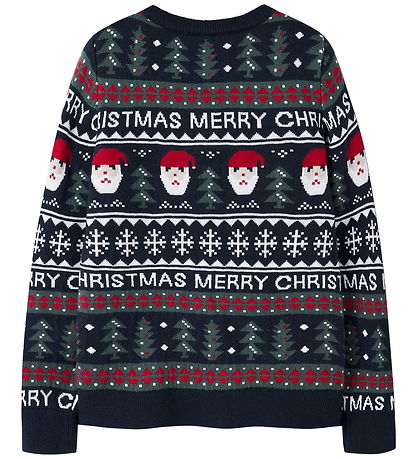 blouse festif Name It, dont le design attire le regard avec son motif de Noël. De Chemisier bleu marine, il est orné d'un motif imprimés composé de têtes d'elfes, de sapins de Noël, de flocons de neige et du texte « Joyeux Noël ». Il présente une encolure tour classique et des bords côtelés aux manches.