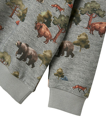 Charmant sweat Name It gris chiné, orné d'un imprimé intégral d'arbres et d'adorables animaux. Ce Name It possède des manches longues et une encolure tour avec des bords côtelés à toutes les ouvertures. L'intérieur est en coton brossé doux.