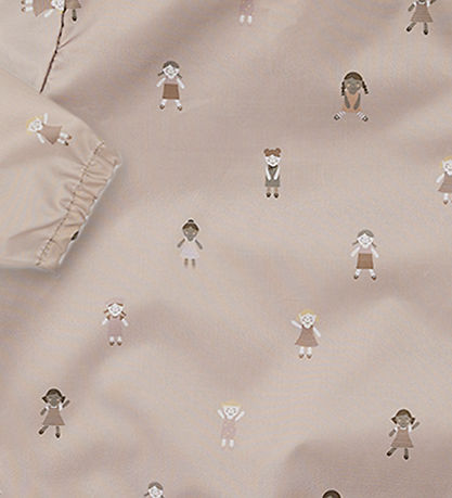 Joli tablier Smallstuff dans une teinte rose cendré avec un joli imprimé de petites poupées.