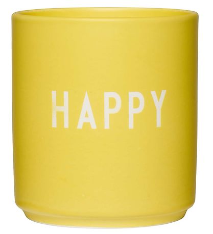 Tasse Nice Design Letters en jaune avec "Happy " écrit en blanc.