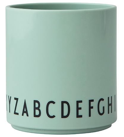 Tasse Practical Design Letters verte, avec l'alphabet noir qui s'étend tout tasse. Design Letters n'étant pas une marque danoise, les lettres Æ, Ø et Å ne sont pas incluses.
