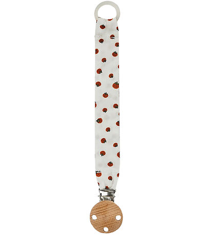 tétines pratique Smallstuff en blanc avec un imprimé intégral de fraise rouges.