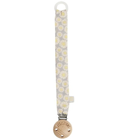 tétines pratique Smallstuff en gris avec imprimé floral intégral en blanc et jaune