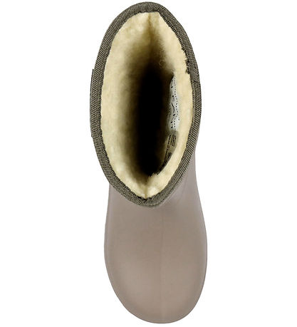 Belles bottes thermiques En Fant en gris-beige avec un petit logo réfléchissant à l'extérieur.