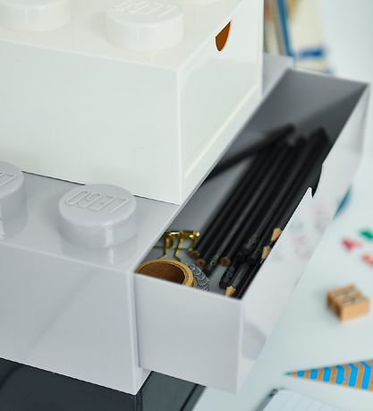 Bon tiroir de LEGO® Storage en forme de bloc LEGO® gris avec huit boutons sur le dessus.