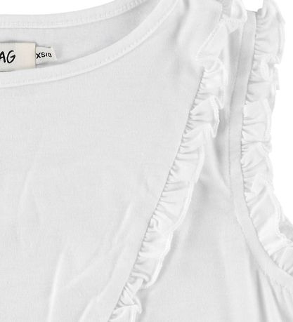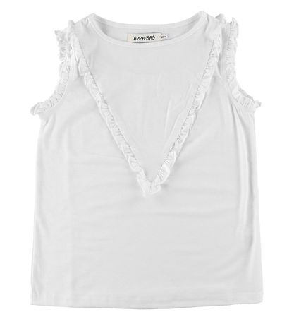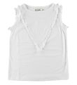 Add to Bag Le haut a un gorge tour avec un bord côtelé étroit et sans manches, mais en revanche il y a de jolis bords à volants au niveau des ouvertures de bras. Sur la poitrine, il y a un fin volant en forme triangulaire. Le haut est d'une qualité douce et extensible.