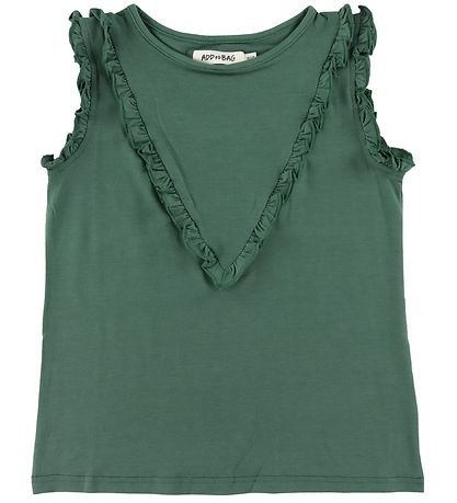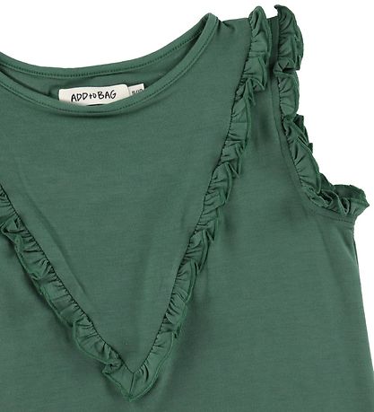 Add to Bag Le haut a un gorge tour avec un bord côtelé étroit et sans manches, mais en revanche il y a de jolis bords à volants au niveau des ouvertures de bras. Sur la poitrine, il y a un fin volant en forme triangulaire. Le haut est d'une qualité douce et extensible.
