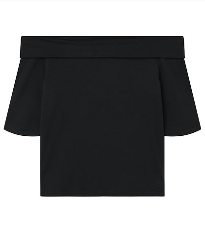 top LMTD élégant dans une couleur noire classique. Le haut a les épaules nues et un buste large en haut. Il a des manches courtes et un design épuré qui le rend facile à coiffer.