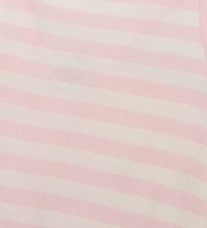 Magnifique top Mads Nørgaard à a rayures horizontales rose et blanc, avec une bonne structure côtelée. Les bords sont rose.