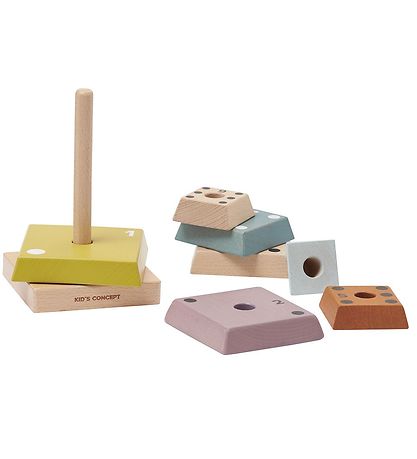 La Kids Concept est à la fois ludique et éducative pour les plus petits, car elle renforce la motricité et le sens de la logique de l'enfant. La set inférieure comporte au milieu un long bâton en bois sur lequel les autres parties doivent être empilées.