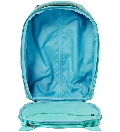 Le trolley Affenzahn se compose d'un grand compartiment avec une poche zippée pratique à l'intérieur. Le Sac est bleu clair à l'intérieur et s'ouvre par un double fermeture éclair. Devant il y a une poche en forme de tête de hibou, et sur les côtés il y a des poches ouvertes en maille polyester.
