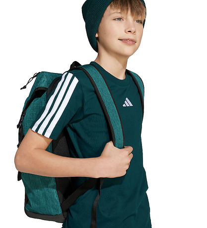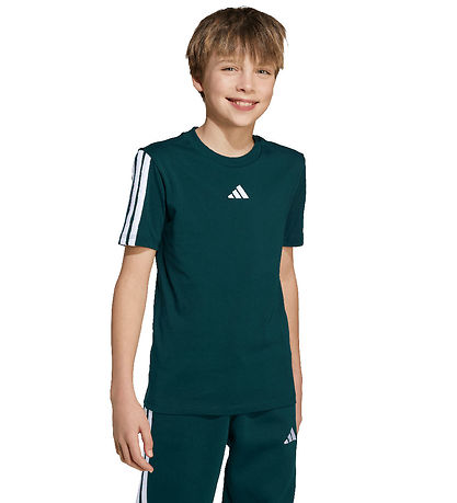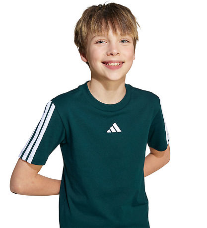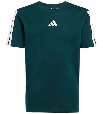 T-shirt adidas Performance élégant d'un vert foncé intense. T-shirt arbore les trois a rayures emblématiques blanches le long des manches, créant un joli contraste. Un discret logo adidas blanc est brodé sur la poitrine.