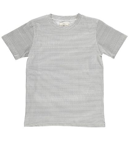 t-shirt Fine Gro blanc à rayures noir verticales.
