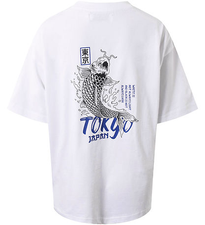 T-shirt Smart Hound en bleu marine et sur le dos il y a un grand imprimé avec un poisson noir ainsi qu'un texte bleu imprimé.