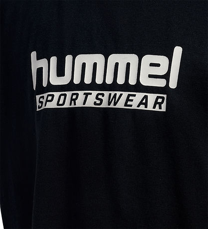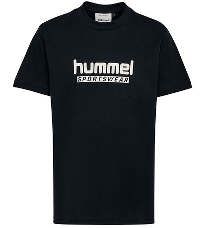 T-shirt Smart Hummel noir avec un grand imprimé logo en blanc sur le devant. Le T-shirt a des manches courtes et donne un style moderne et simple à la garde-robe.