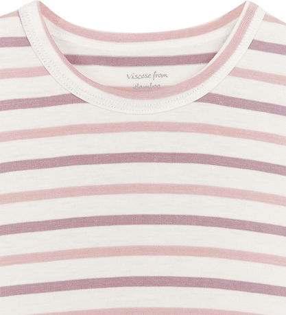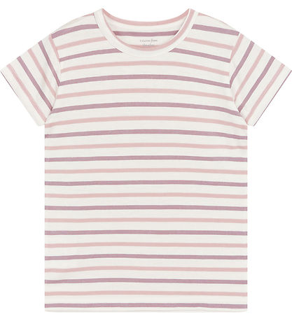 Joli t-shirt Hust and Claire dans une teinte beige clair avec a rayures roses et violet clair. Le T-shirt a un design simple qui le rend intemporel et facile à combiner avec d'autres articles de votre garde-robe.