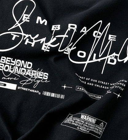 T-shirt Name It noir avec texte blanc imprimé sur la poitrine gauche et dans le dos. Ce t-shirt possède une encolure tour à bord côte fin et des manches courtes.