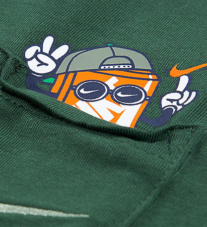 T-shirt -shirt Nike fonctionnel d'un vert profond. Il est doté d'une poche poitrine pratique ornée d'un logo Nike brodé, une touche d'élégance. Au-dessus de la poche, une petite illustration au motif amusant est présente. Ce t-shirt Nike possède des manches courtes et une encolure tour, pour un look simple et classique.