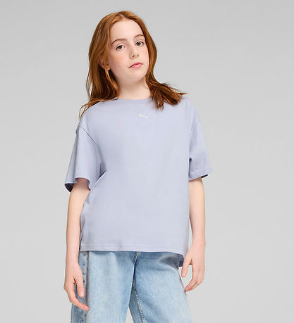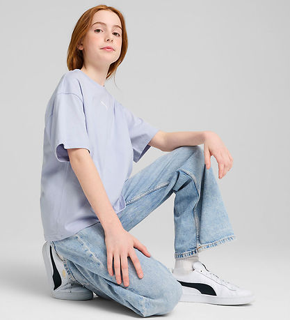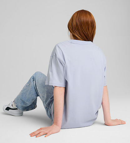 Magnifique t-shirt Puma à manches courtes dans une teinte bleu clair avec un logo brodé en blanc sur le devant. Le T-shirt a une coupe ample et une encolure tour avec un bord côtelé étroit.